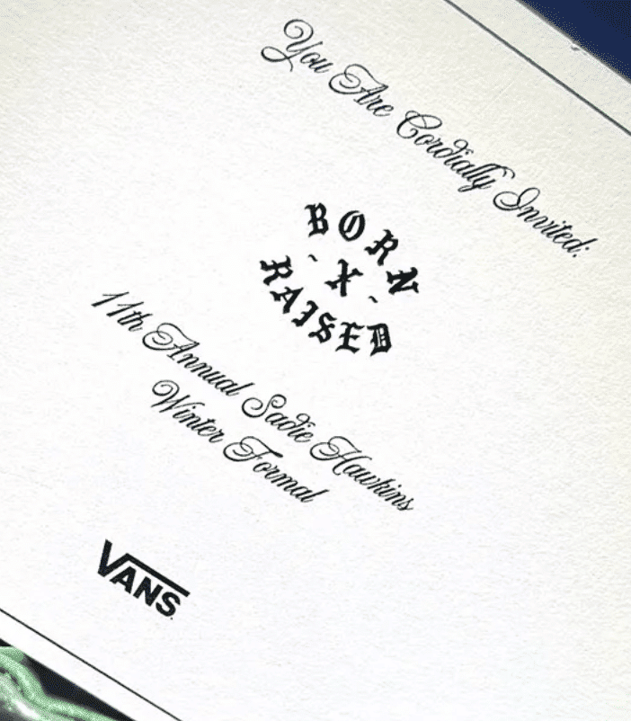 Born and Raised Sadie Hawkins Winter Formal November 25, 2025 @ 8:00 pm - 11:30 pm Invite Only - Born X Raised Celebrates 11 Years of Sadie Hawkins Winter Formal sponsored by Vans.