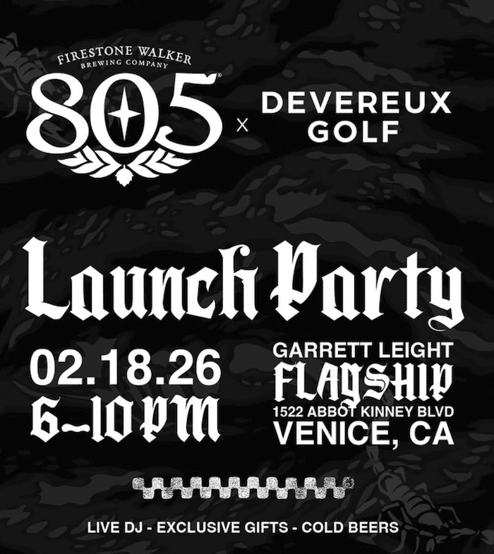 6:00 pm - 10:00 pm 805 X Devereux Golf Launch Party February 18 @ 6:00 pm - 10:00 pm 805 X Devereux Golf Launch Party Open - Firestone Walker 805 and Devereux Golf launch partu with cold beers, live DJs, and exclusive gifts.