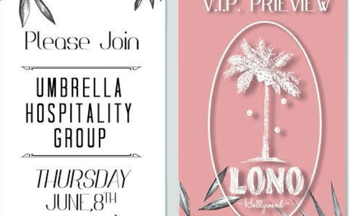 Invite Only – The Umbrella Hospitality Group os Excited to share the VIP Preview of LONO Hollywood with flavors by David Lesproon and Mike Lay.
