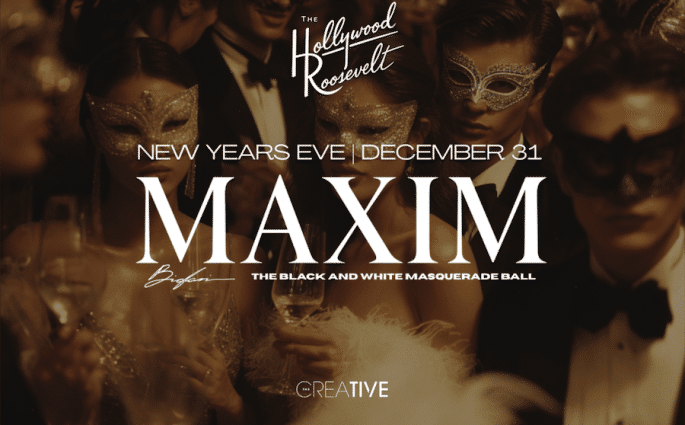 Ticketed – Ring in 2025 with a dose of Old Hollywood glamour during this New Year’s Eve celebration at the classic Hollywood Roosevelt. Maxim is taking over the historic hotel, transforming it into a glitzy Black & White Masquerade Ball for the night. Don your best semi-formal or cocktail attire and walk the red carpet before exploring four distinctly themed rooms filled with top-notch music and live entertainment, breathtaking decor,